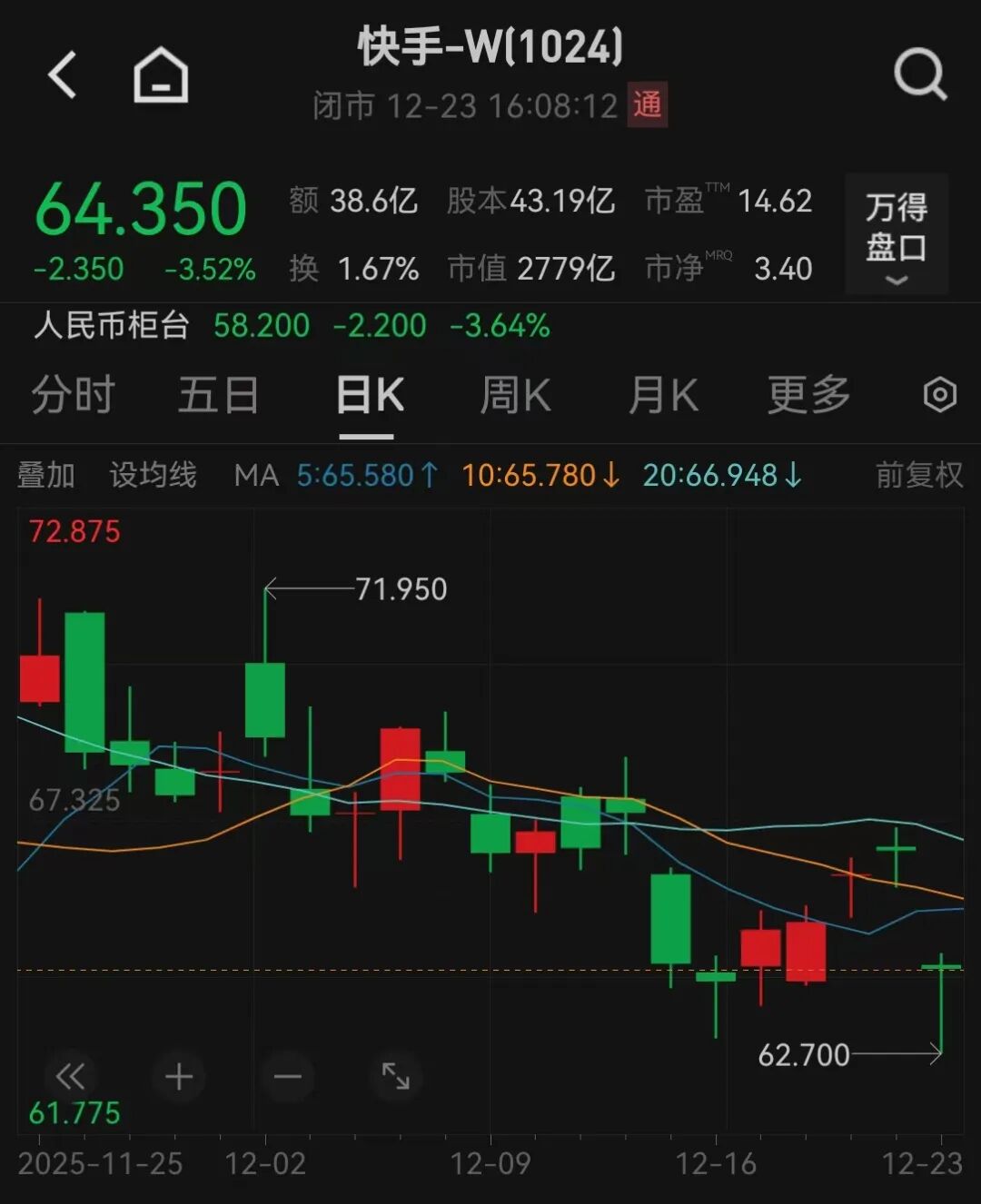 快手跌超3%。公司发布公告称,12月22日22时左右,快手APP直播功能遭网络不法分子攻击。公司第一时间启动应急预案,经系统修复后,快手APP直播功能已逐步恢复正常服务,其他功能未受影响。
