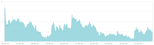 中证全指证券公司指数(399975.SZ)近十年PB走势