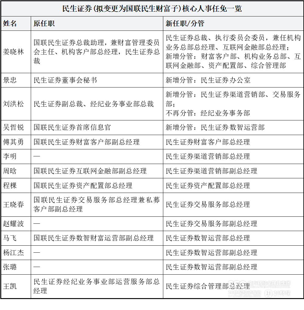 近期,民生证券部分人事调整方案已内部公示,具体如下: