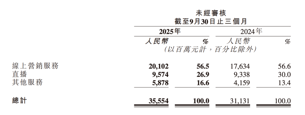 直播是快手核心业务之一,2021 年之前一直是快手第一大收入来源。快手 2025 年第三季度财报显示,当季直播业务收入同比增长 2.5% 至 96 亿元,占总营收比重为 26.9%,位列快手第二大收入来源。快手在今日发布的自愿性公告中警告投资者,“敬请各位股东及潜在投资者在交易本公司证券时谨慎行事。”
