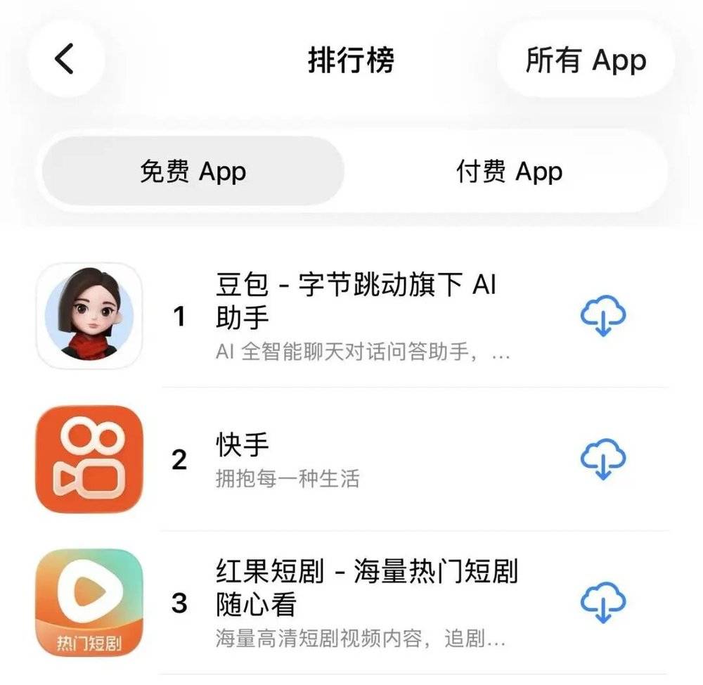 短时间内,快手在社交媒体上的关注度骤升。快手应用在苹果 App Store 中国区下载榜一度跃升至第二位,仅次于豆包,超过红果短剧。一张网传安卓手机应用商店截图显示,快手有 404 万人回归。