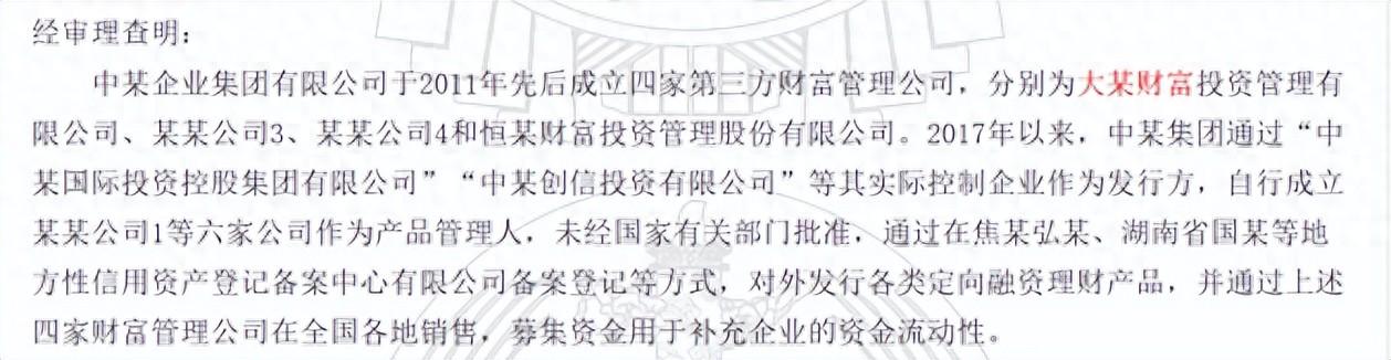 当时,相关判决书显示,2011年起,中植集团先后设立恒天财富、新湖财富、大唐财富、高晟财富四大财富公司。2017年后,又通过中植国际、中植创信投资等实际控制的企业作为发行方,并设立6家产品管理公司,在未经监管批准的情况下,通过湖南国恒信用资产登记备案中心及部分个人渠道,向公众发行各类定向融资理财产品。募集资金主要用于补充企业资金流动性。