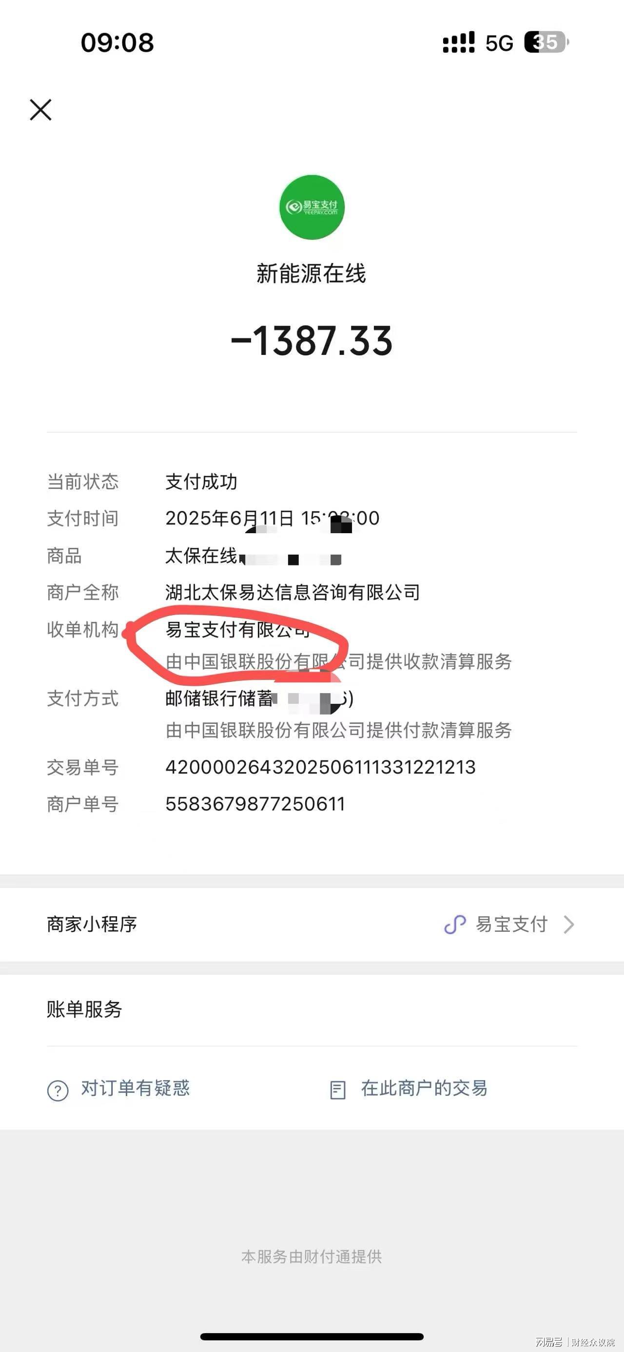 后来沙先生才发现,通过易宝支付收款公司名为“湖北太保易达信息咨询有限公司”,虽然名称中有“太保”字样,实际与太平洋保险没有任何关系。