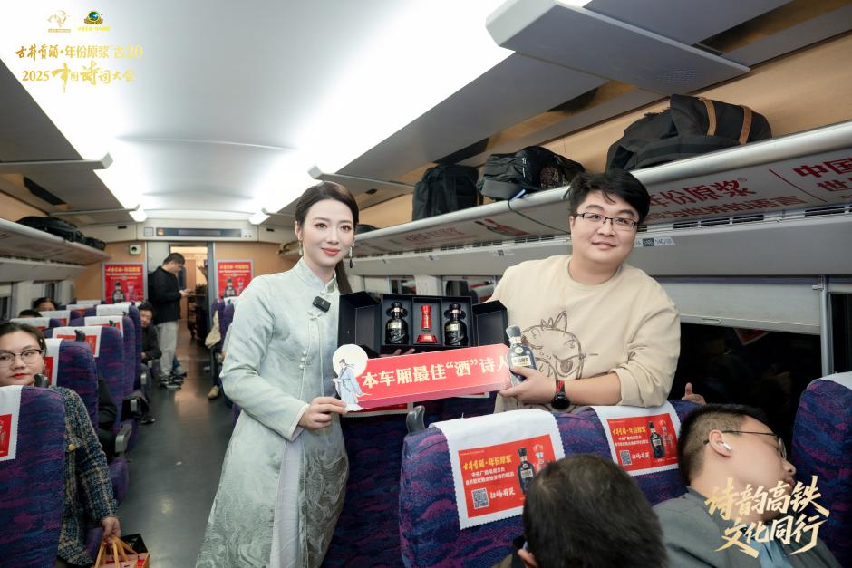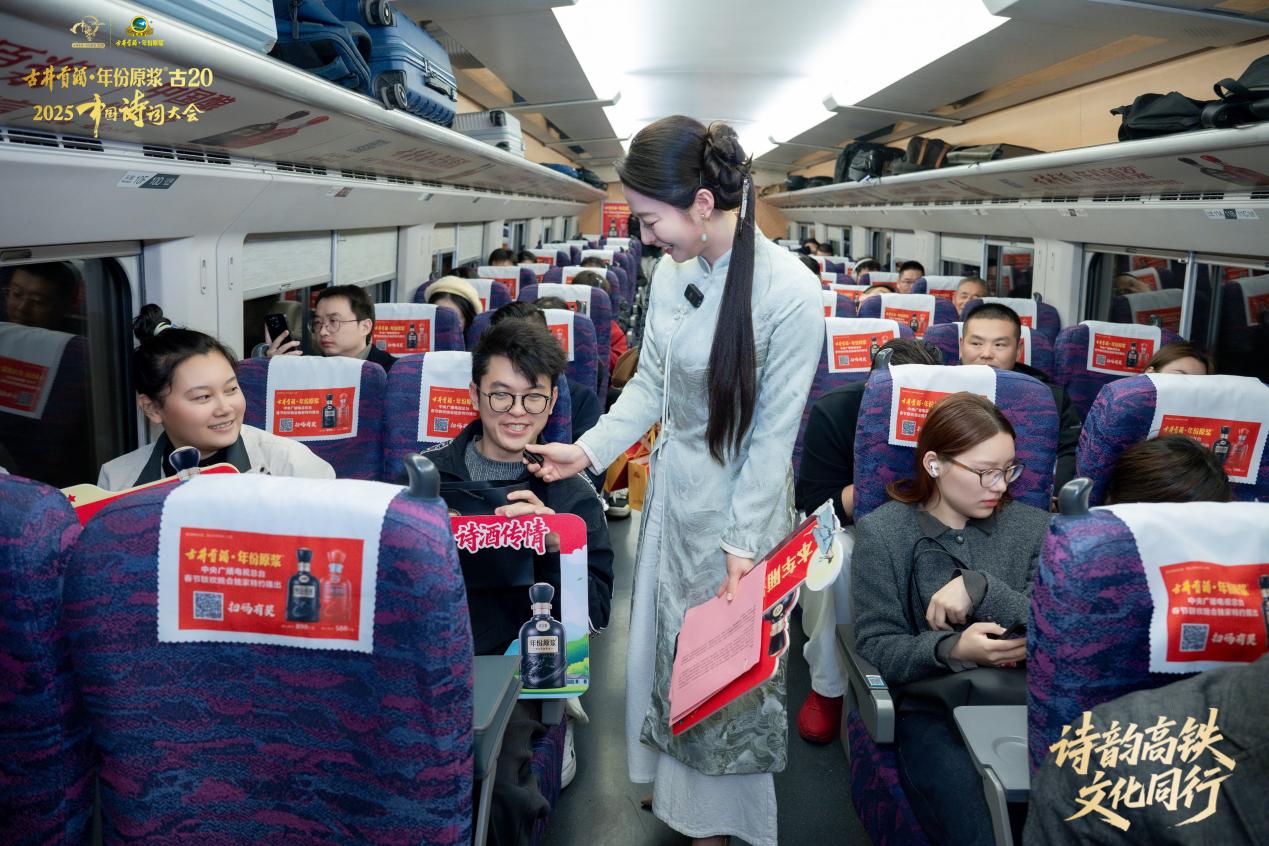 当350km/h的中国高铁邂逅千年诗词,当一杯醇香美酒唤醒心底的情怀,一场流动的雅集温暖启程。在古井贡酒·年份原浆古20《中国诗词大会》即将启幕之际,一场别开生面的“列车上的诗词大会”,让奔赴远方的旅途,化作一场穿越古今的诗意奔赴。作为中国老八大名酒之一,古井贡酒把诗词的雅趣带上列车,让乘客诗意大发!