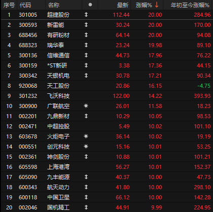 今天商业航天板块反包,超捷股份、瑞华泰、航天动力、中国卫星等多只股票涨停。