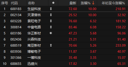 盘中有报道称,生益科技m9材料通过,生益科技午盘爆拉直线涨停,并带动电子布、铜箔等pcb上游材料大涨。