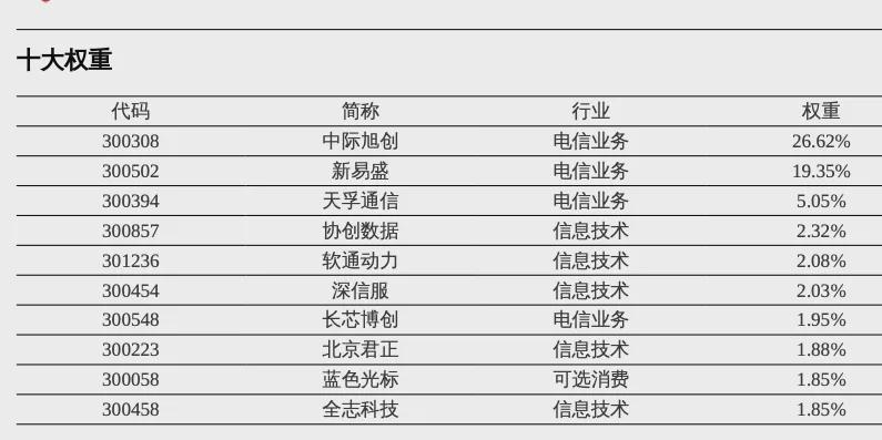 创业板人工智能ETF(159363)是全市场首只跟踪创业板人工智能指数(970070.CNI)的ETF产品,该指数覆盖了AI基础硬件+软件算法+垂直应用的全产业链,无论哪个板块爆发都不容易错过行情,其中又以AI算力板块为重,特别是光模块CPO持仓占比超过56%。权重股方面,偏向于技术成熟、已进入或接近业绩兑现的AI龙头企业,比如前三大权重股“易中天”与海外算力投资关系密切,订单与业绩可见度高、弹性大。