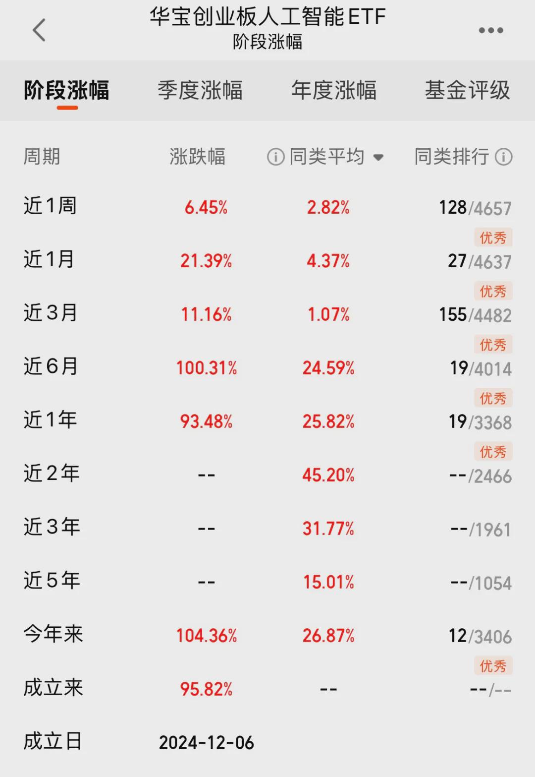 而且这两个指数分别立足于创业板、科创板,在行业上升期业绩弹性更高。截至12月23日,近一年创业板人工智能ETF(159363)净值累计上涨93.48%,夏普比率达到2.07,表现远超同类平均;今年新成立的科创人工智能ETF(589520),近半年净值累计上涨36.73%,三季度净值增长率更是达到了50.27%。