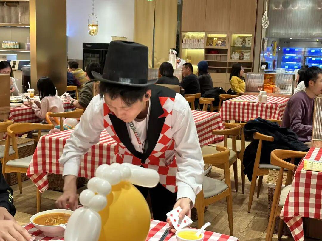 给我们表演魔术的小张(化名)坦言:“贾老板虽然看起来有点凶的样子,但从不亏待我们员工,我们在西贝干,包吃包住,不用考虑房租啥的压力,自己再努力一点,给顾客带去更多一点欢乐,每月还能拿不少津贴。”