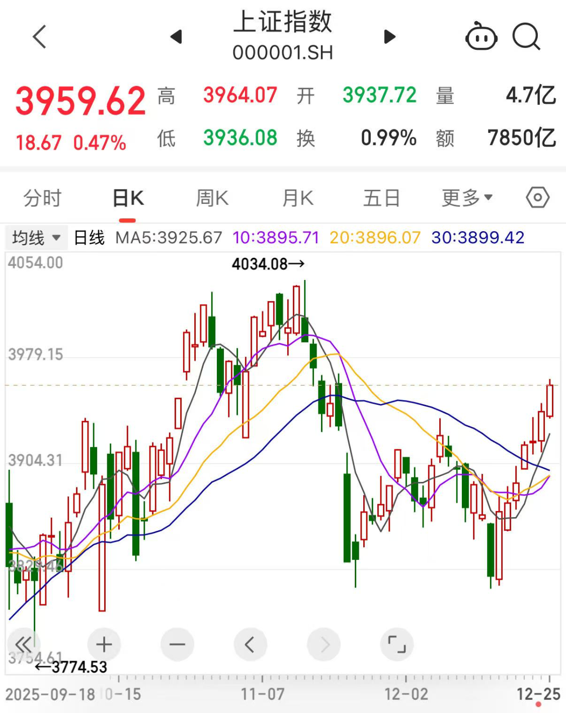 在一片乐观的同时,我们也看到一个数据:截至2025年12月24日,A股融资融券余额为25416.83亿元,接近历史新高。今天沪指收在3959点,在指数逐渐逼近整数关的同时,融资余额也在历史新高附近,这个时候我们还要充分认识到杠杆风险。