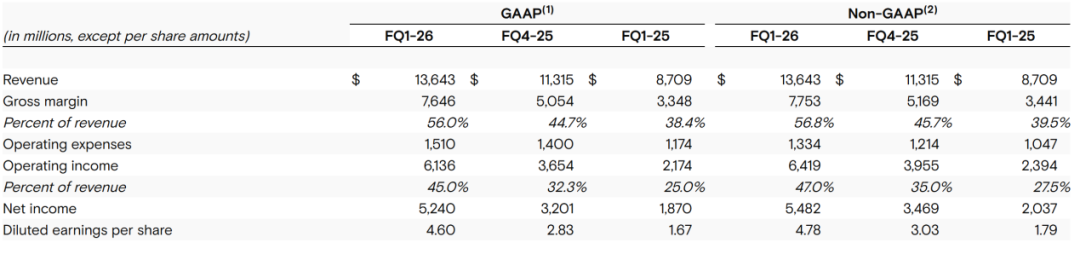 12月17日,美光以一份“炸裂”的财报奠定了其在AI基建中的“战略配给者”地位。数据显示,当季美光营收136.4亿美元,同比增长57%,连续三季创纪录;同期,调整后的毛利率达到56.8%,环比提升11个百分点,Non-GAAP净利润54.8亿美元,同比增长169%。