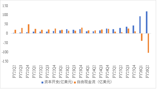 “高杠杆垫资、慢回款”的模式,直接导致其资本开支(CapEX)失控扩张和自由现金流的日益干涸。财报显示,本季度公司资本支出为120亿美元,同比增长超过200%,远高于共识预期的84亿美元,导致自由现金流(FCF)降至负100亿美元。