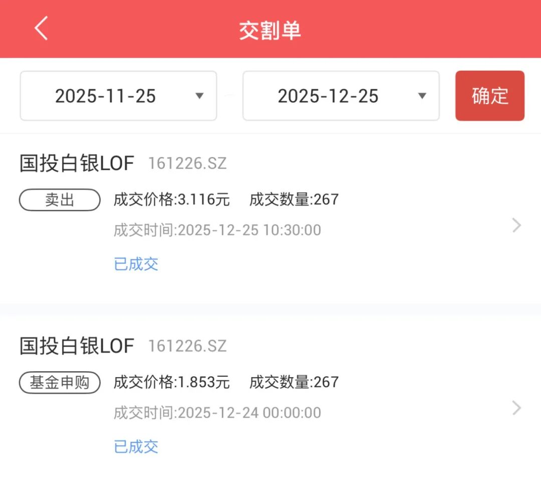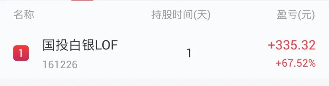 昨天的文章,不是说周二的时候用了500块钱去参与国投白银LOF(161226)的套利吗?