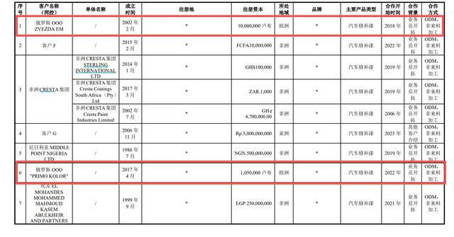 与此同时,记者还注意到,雅图高新的境外收入除境外子公司外,还包括直接出口至境外经销商的收入。高新雅图在监管问询函回复中,披露一部分俄罗斯境外品牌商包括俄罗斯OOO ZVEZDA EM、俄罗斯OOO"PRIMO KOLOR"。根据12月25日当天汇率换算,俄罗斯OOO ZVEZDA E注册资本仅为88.81万元;俄罗斯OOO"PRIMO KOLOR"的注册资本仅为9.33万元。