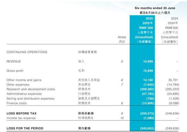 在核心管线推进过程中,公司研发投入持续加码,2025年上半年3.00亿元的研发开支较上年同期显著增长46.0%,但核心管线进展缓慢、部分项目终止的现状,导致研发投入难以快速转化为营收,不仅无法缓解亏损压力,反而进一步加剧了业绩负担。