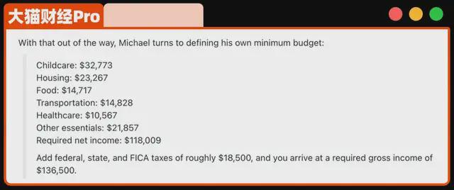 他自己列了一个账单,光儿童支出,就超过了联邦贫困线。