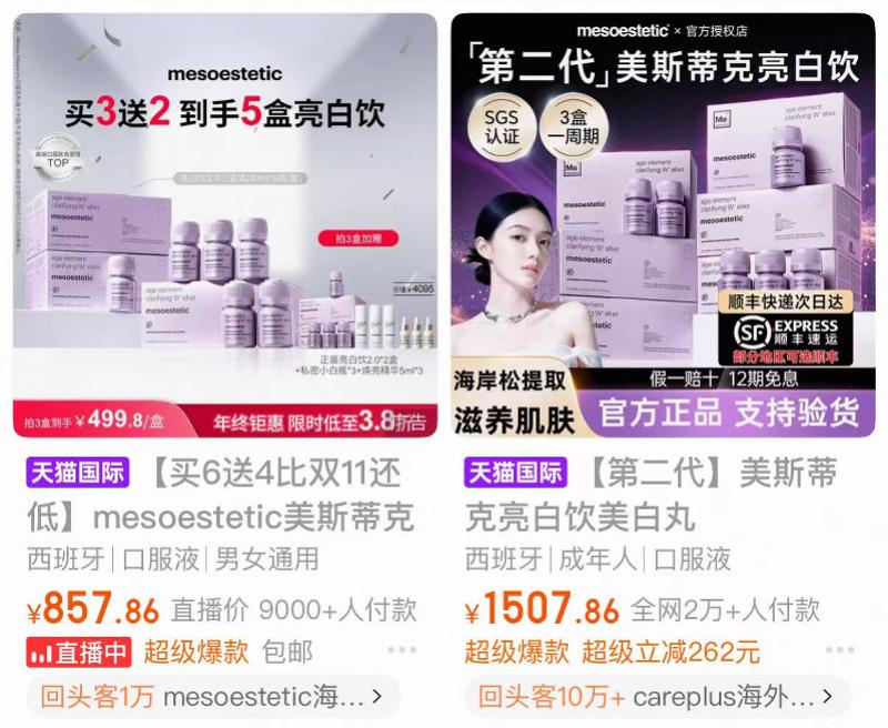 双方合作以来,美斯蒂克为水羊股份带来了不少增量。据水羊股份2024年年报资料,报告期内公司通过亮白饮产品升级、明星代言、多重渠道建设等策略,实现品牌GMV同比增长50%以上,明星产品亮白饮稳居某音口服美白赛道TOP1。