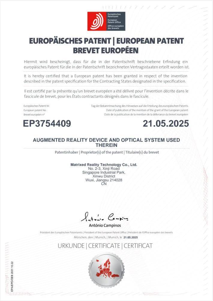 实际上,EP3754409B1成功在欧洲专利局注册,成为一审判决的关键依据,也证明了这一主张得到了司法框架的支持。这本身就是XREAL深耕眼镜领域的证明。