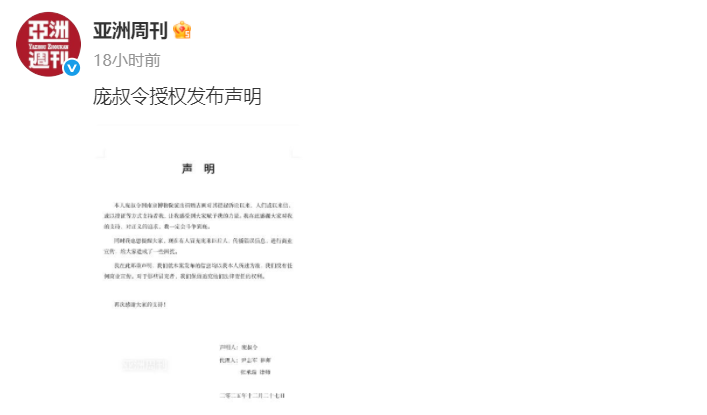 自从这个事件引发全网关注后,《亚洲周刊》就成为了庞叔令的独家发声平台。《亚洲周刊》为庞叔令发表声明,辟谣,揭露假的庞家后人,赚足了眼球。《亚洲周刊》俨然成为了拥有最多一手信息,最正义的媒体。