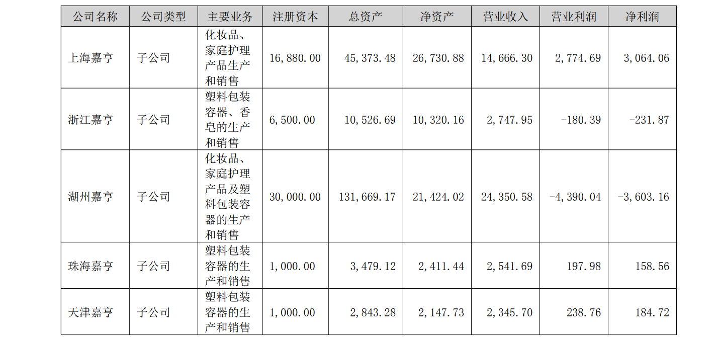 为扩张产能,嘉亨家化在2017年12月成立了全资子公司湖州嘉恒,注册资本达3亿元,主要负责化妆品、家庭护理产品及塑料包装容器的研发、生产与销售。2022年6月,其一期化妆品生产线开始逐步投产,技术研发中心已于2023年投入使用。