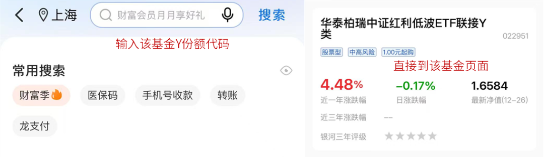 如果你知道基金代码(Y份额代码),可以在银行app直接输入,即可交易。