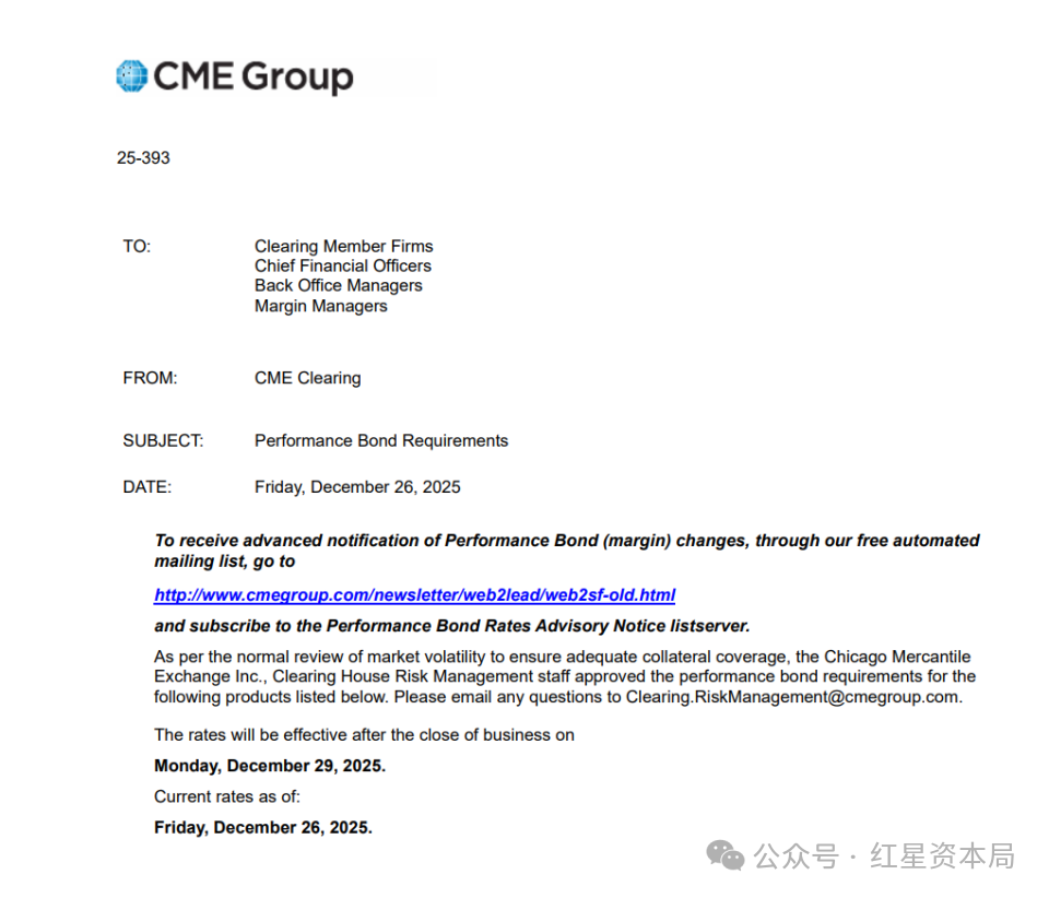消息面上,芝商所集团上周五发布保证金调整通知,全面上调白银、黄金、铂金、钯金、碳酸锂等近期热门合约的期货及对应结算价交易合约(TAS)的履约保证金。新的保证金要求于周一(12月29日)收盘后生效。