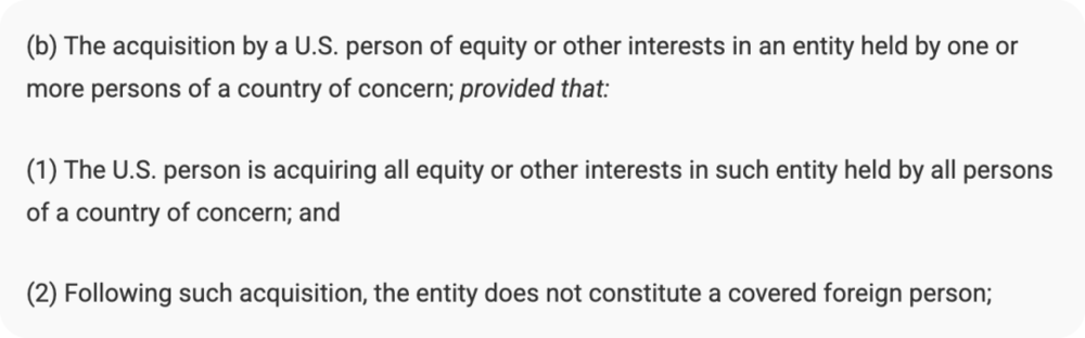 (1)美国主体收购了全部受关注国家(即中国)主体持有的权益。