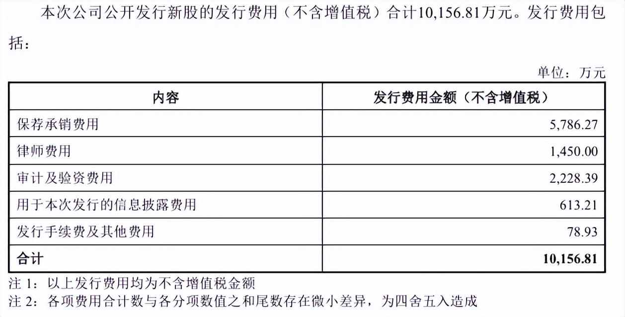 本次公司公开发行新股的发行费用(不含增值税)合计10,156.81万元。,其中承销及保荐费用5,786.27万元、审计费用2,228.39万元、律师费用1,450.00万元、信息披露费用613.21万元、发行手续费用及其他78.93万元。。