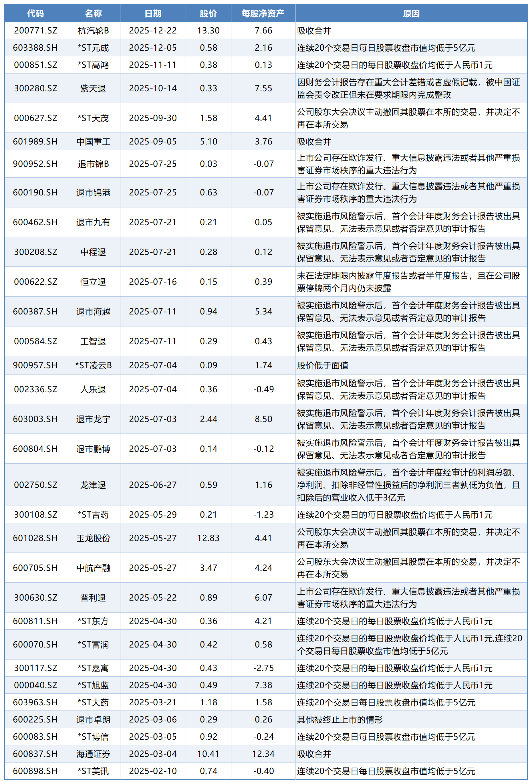 根据iFinD数据,截至12月30日,年内已有31家公司退市,已形成“强制退市为主、主动退市提速”的多元化格局。