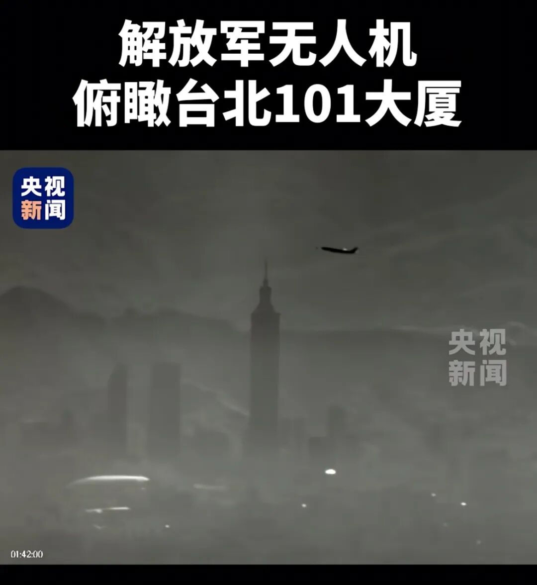 甚至在视频结尾,还出现了解放军无人机“打卡”台北101大厦的剪影。