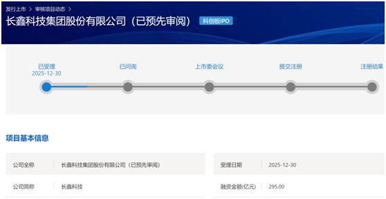 上交所官网显示,长鑫科技集团股份有限公司(以下简称“长鑫科技”)科创板IPO申请,已于2025年12月30日获受理。