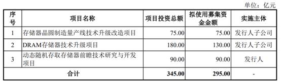 公司招股说明书(申报稿)显示,长鑫科技是我国规模最大、技术最先进、布局最全的DRAM(动态随机存取存储器)研发设计制造一体化企业。本次发行拟募资295亿元,主要用于包括DRAM存储器技术升级项目在内的3个项目。