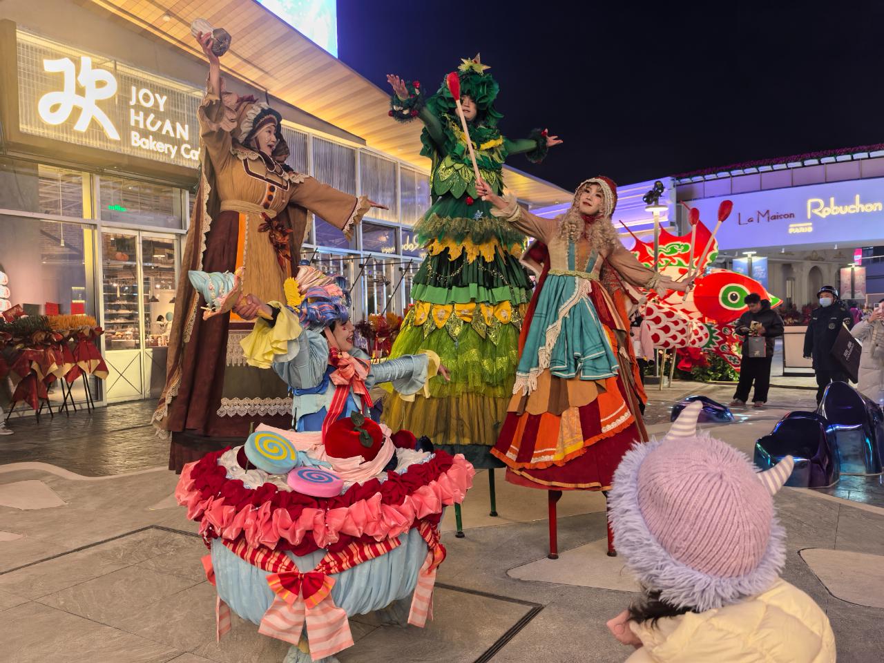 近期,汀云小镇还为观众带来丰富多彩的演艺活动,如巨型非遗鱼灯巡游、乌镇戏剧节《卖火柴的小女孩》《星宇童话》演出、“流动艺术”街头表演、摇摆舞快闪、潮音狂欢音乐会等。在《卖火柴的小女孩》演出现场,记者看到,虽然夜晚寒意十足,但演员们与观众互动的热情丝毫不减,在场的不少小朋友都直接看入了迷。