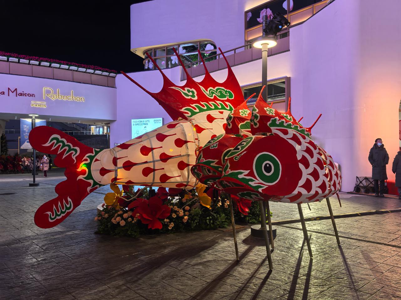 湾里·汀云小镇内设置的鱼灯装置。