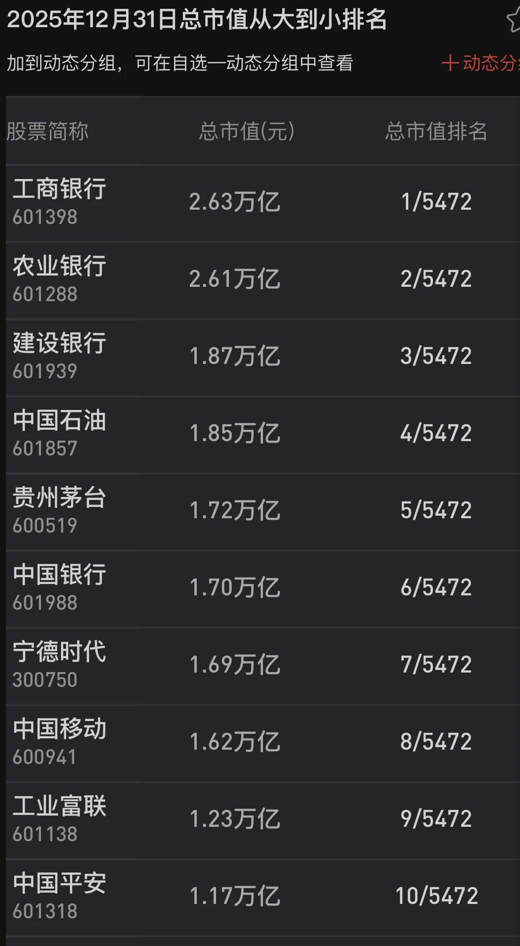 但若论市值,A股股王是工商银行,并且市值前十里面5家都是银行保险。
