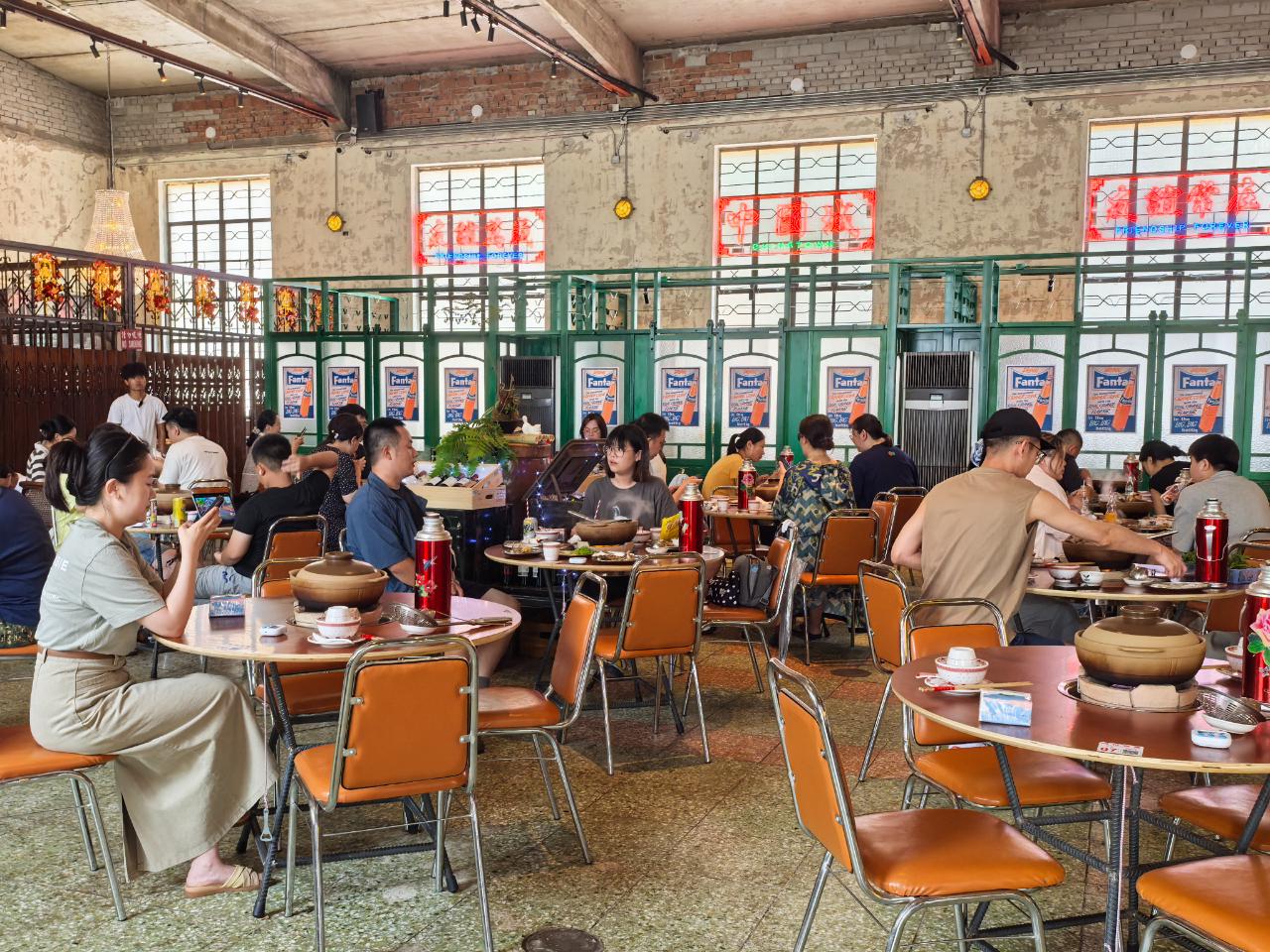 北京友谊商店在改造过程中,“修旧如旧”地保留了老建筑的肌理。图为由员工食堂改造而来的阿招鸡煲餐厅。