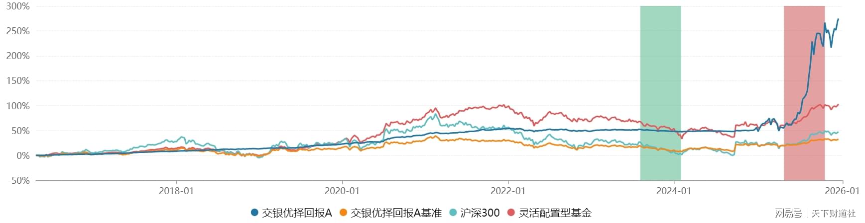 榜单排名第二的交银优择回报A,有点“静若处子动若脱兔”的风格。