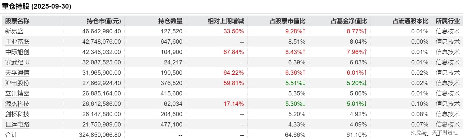 从重仓股来看,自2025年二季度,该基金减少了消费股以及港股的配置,逐渐增配到新易盛、胜宏科技、中际旭创等信息技术行业个股。抓住了牛股机会,让该基金收益快速起飞。