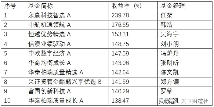 混合型基金收益率前十名