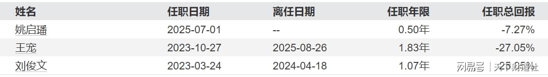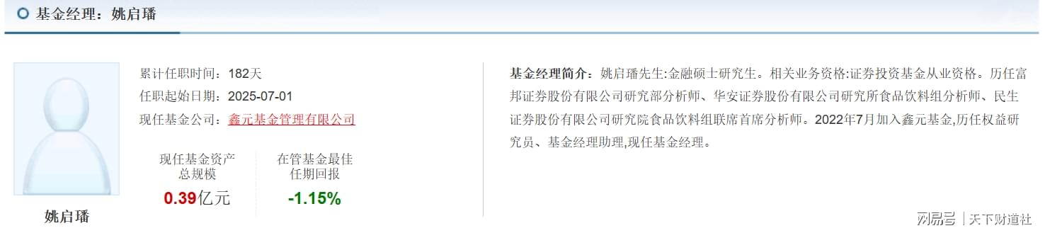 现任基金经理姚启璠于2025年7月1日开始掌管该基金,任职总回报为-7%。