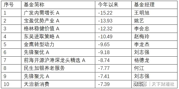 2025年普通股票型基金收益率后十名