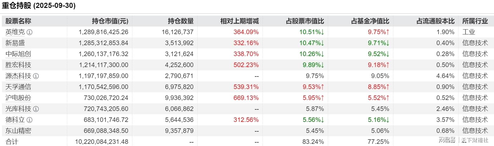 永赢科技智选A在2025年二季度准确调仓换股,重仓股中新进了新易盛、中际旭创、天孚通信、沪电股份、太辰光等牛股,三季度基金净值快速攀升。