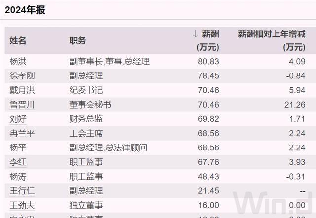 年报显示,2024年,该公司高层薪酬最高是原杨洪,税前薪酬为80.8万元,原副总经理徐孝刚也有78万元,其余在70万元上下;独立董事薪酬16万元,在A股企业中算中等水平。