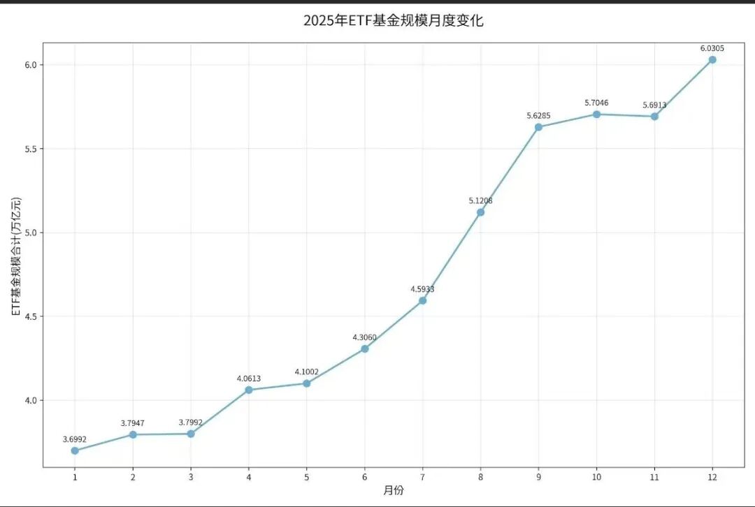 2025年12月30日,我国ETF市场规模突破6万亿元,年内增长超63%,创历史新高。