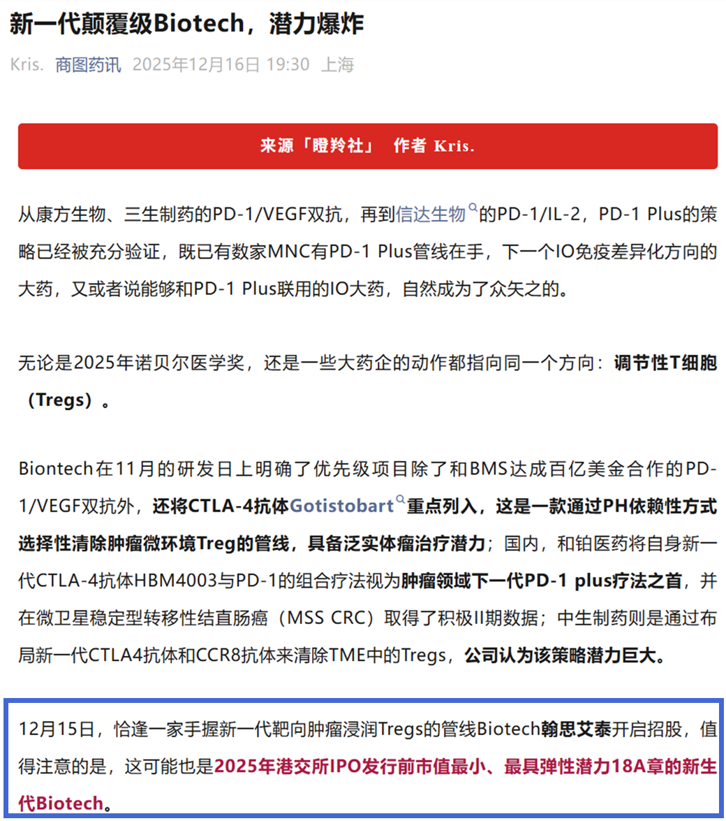 公开资料显示,翰思艾泰在经历2024年11月、2025年5月及2025年12月三次向港交所递表后,终于在年末完成IPO。