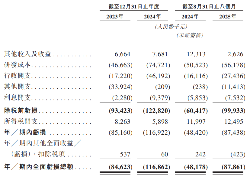 同期,其录得亏损分别约为8516万元、1.17亿元及8743.8万元。