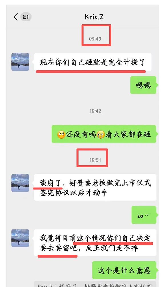 卖出后,双方仍持续交涉。Kris.Z竟然称,“兜底的事确实存在,也可以再买回来放回去,但需要半年时间”。