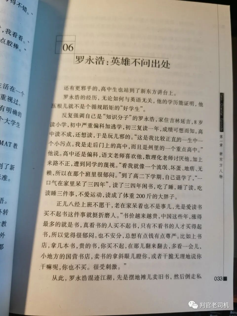 我知道罗永浩这号人物,远早于他的课堂录音流传。2002年在新东方上课的时候,我买过一本《东方马车》,上边就提到了他的事迹: