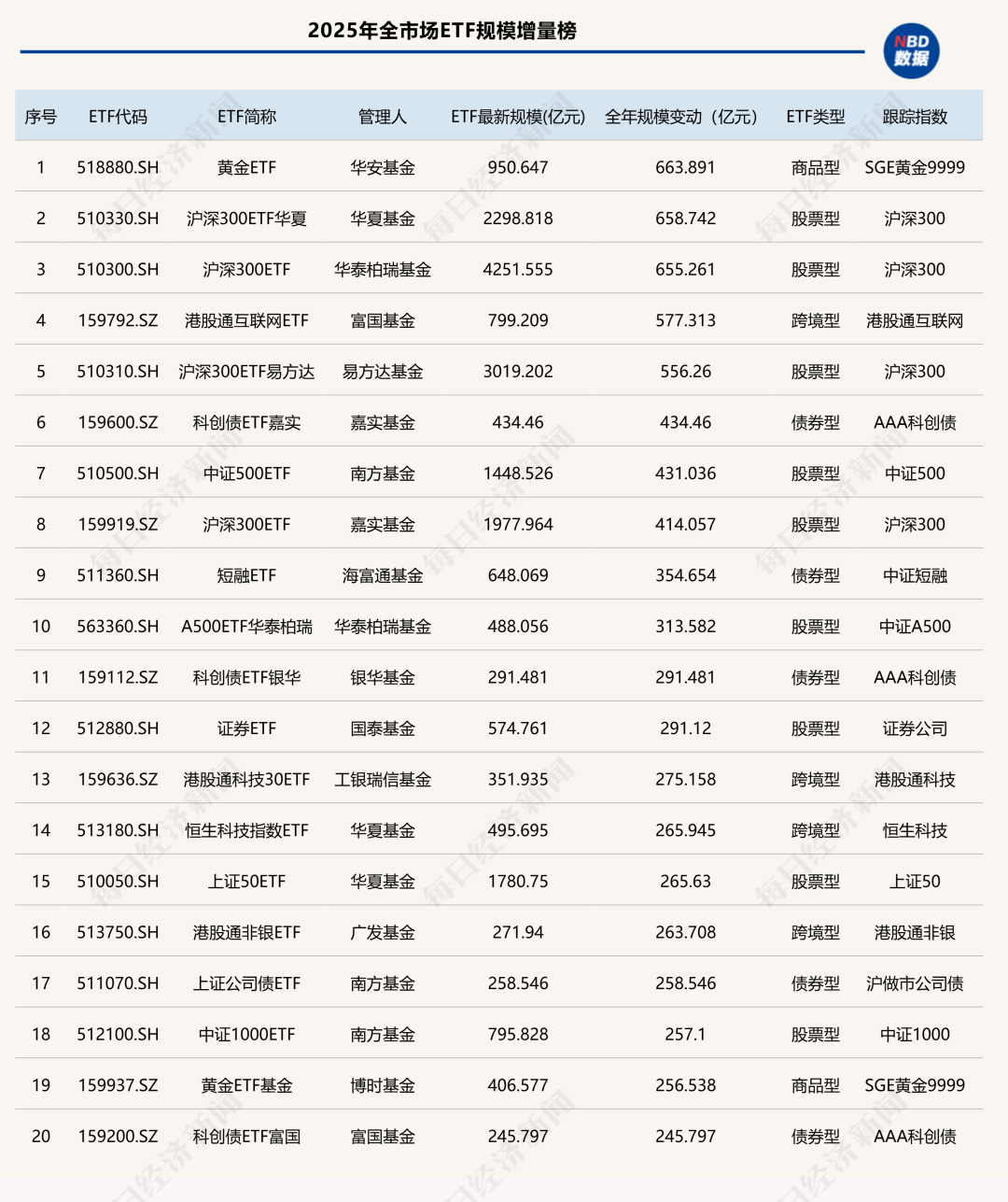 2025年ETF“吸金”榜: