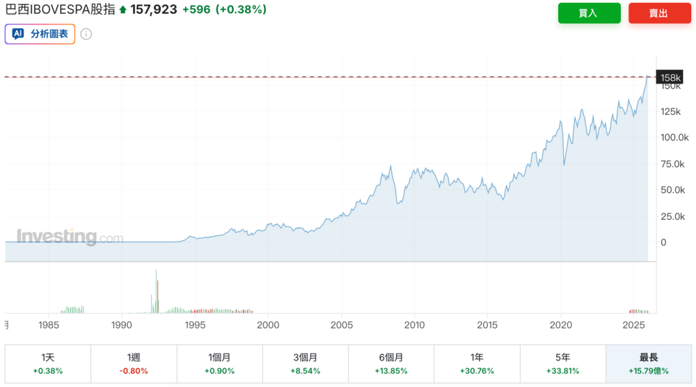 IBOVESPA指数过往的涨幅更是逆天:60多年的时间内暴涨了1533倍,年限差不多的纳斯达克指数也才2万多点。
